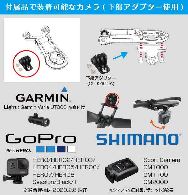 ※適合するハンドル・サイクルコンピューター・カメラ・ライトは仕様等は2019.11.28現在の物です。
