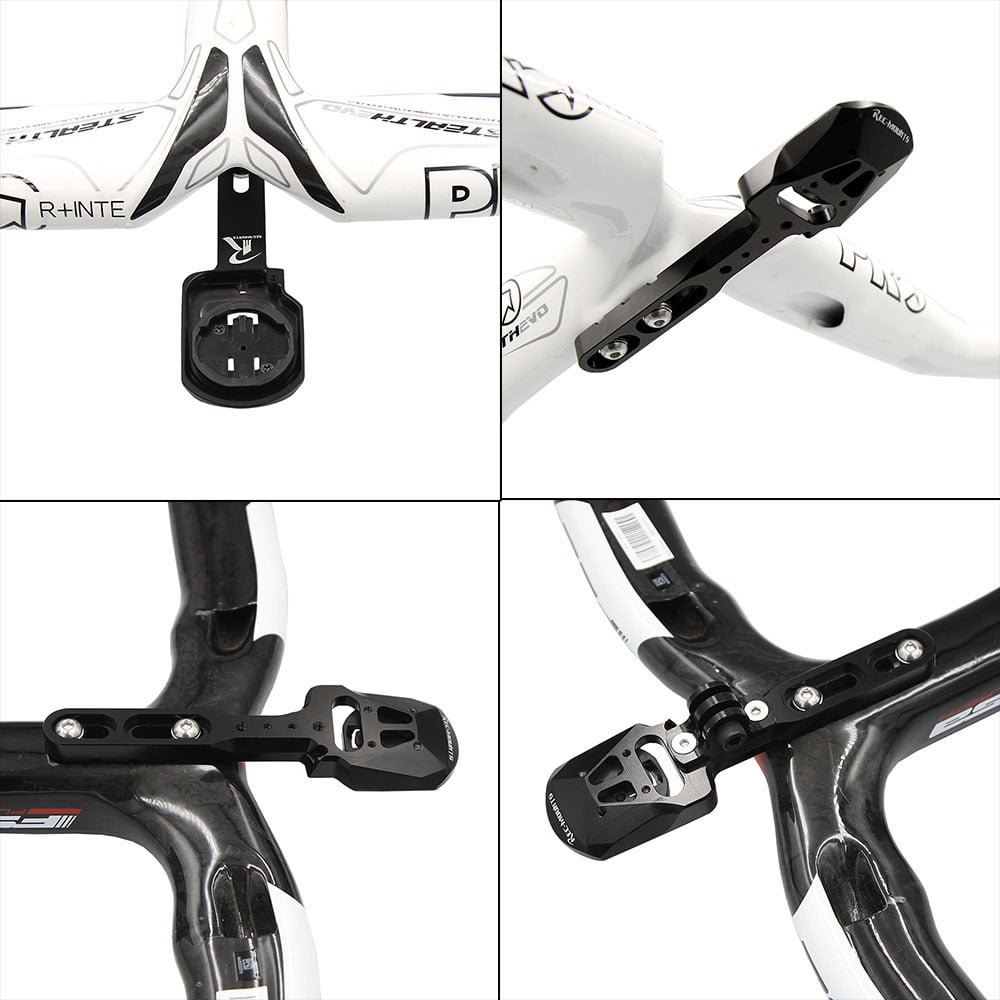 ステム側で2点止め(後方側の穴だけ)で固定は厳禁。マウント破損しますので必ず前後で固定してください。