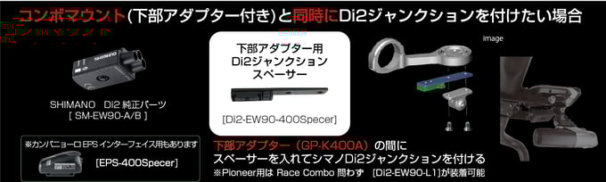 レースモデル は シマノDi2ジャンクション(SM-EW90-A/B)が装着できるアダプターが付属