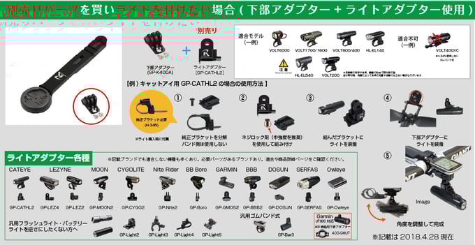 ※適合するハンドル・サイクルコンピューター・カメラ・ライトは仕様等は2020.2.3現在の物です。