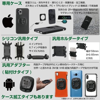 ケース・アダプター・マウント共通なので、生活の色々なシーンでご利用いただけます