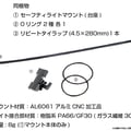 台座側(マウント)は繰り返し利用が可能なリピートタイラップまたはOリング止めの2種類の方法で固定が可能。