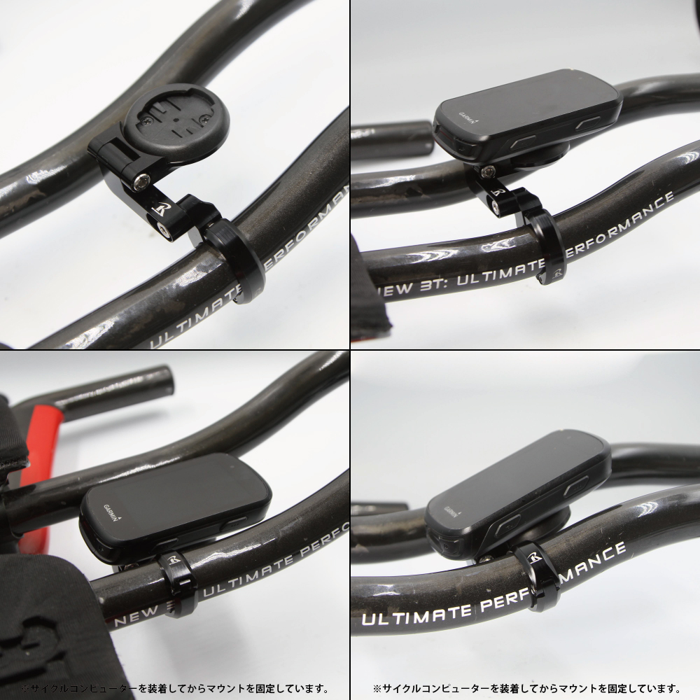 接合部のパーツをサイクルコンピュータ-に固定してからマウントに取付けるので、バーの間に取付可能