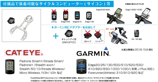 ※適合するハンドル・サイクルコンピューター・カメラ・ライトは仕様等は2019.11.28現在の物です。